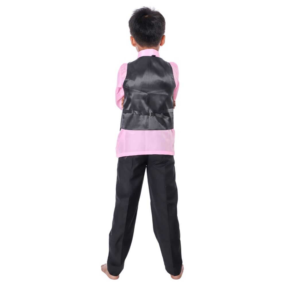 Buy online Ballroom Western Dance Fancy Dress Costume in Pink & Black for boys. Cotton and chairman material used this costume. This dress is a beautiful color combination of black paint and light pink shirt and a black half jacket. This costume is designed for boys to wear in school functions, fancy dress competitions, dance competitions, and festivals.