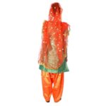 Buy online Bhangra Dance Fancy Dress Costume for Girls in Brocade, Heavy Satin and Net fabric. Costume is in a beautiful color combination of green and orange. This costume is specially designed according to Panjab’s famous Bhangra Dance This costume is designed for girls to wear in school functions, fancy dress competitions, dance competitions, and festivals. The costume is available in different sizes and colors for all age groups of Girls.