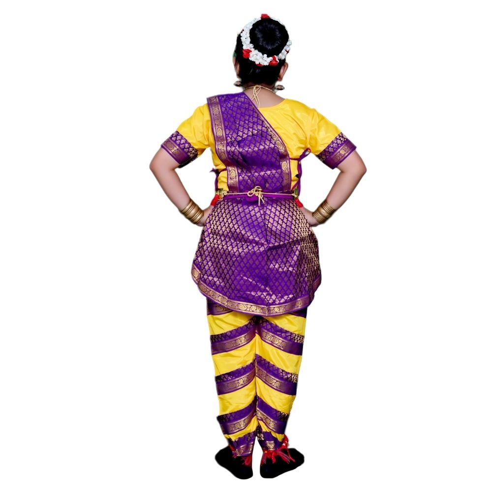 - Product Name: Bharatanatyam dance fancy dress in yellow and purple