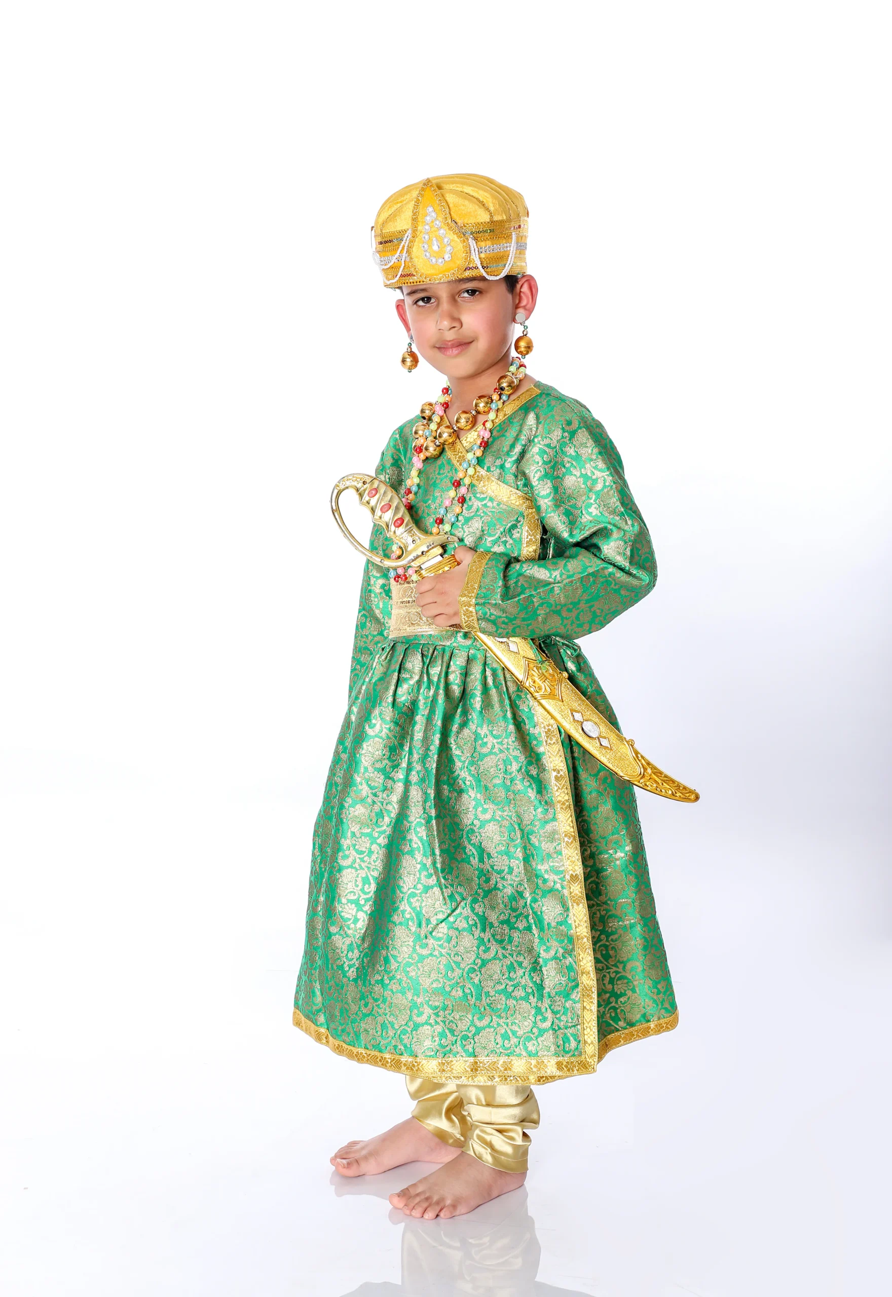 Brocade and dupion are used to make this costume. So Shivaji Maharaj Fancy dress Costume for boys Direct from Manufacturer/ Exporter based in Delhi NCR India. The costume is available in different sizes and a more beautiful color for all the age groups of BOYS.