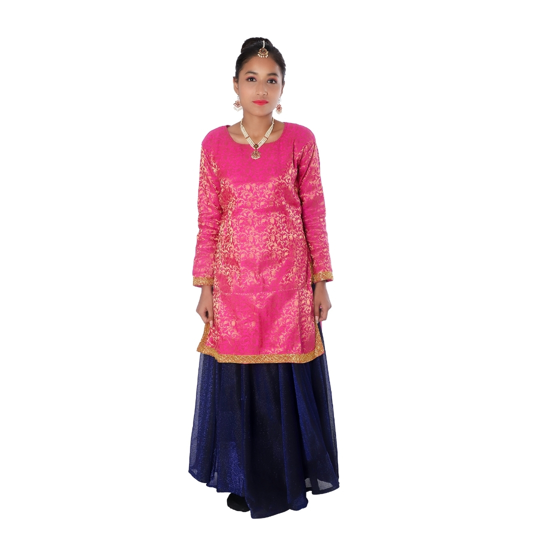 • Includes: Long, loose-fitting tunic or Kurta and Lehenga