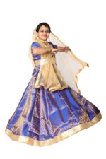 - This costume is specially designed for Kathak dance and fabulous Blue Lehenga & Top and Golden color dupatta. The costumes lehenga and top is made from Chanderi Brocade and dupatta from Symernate fabric.