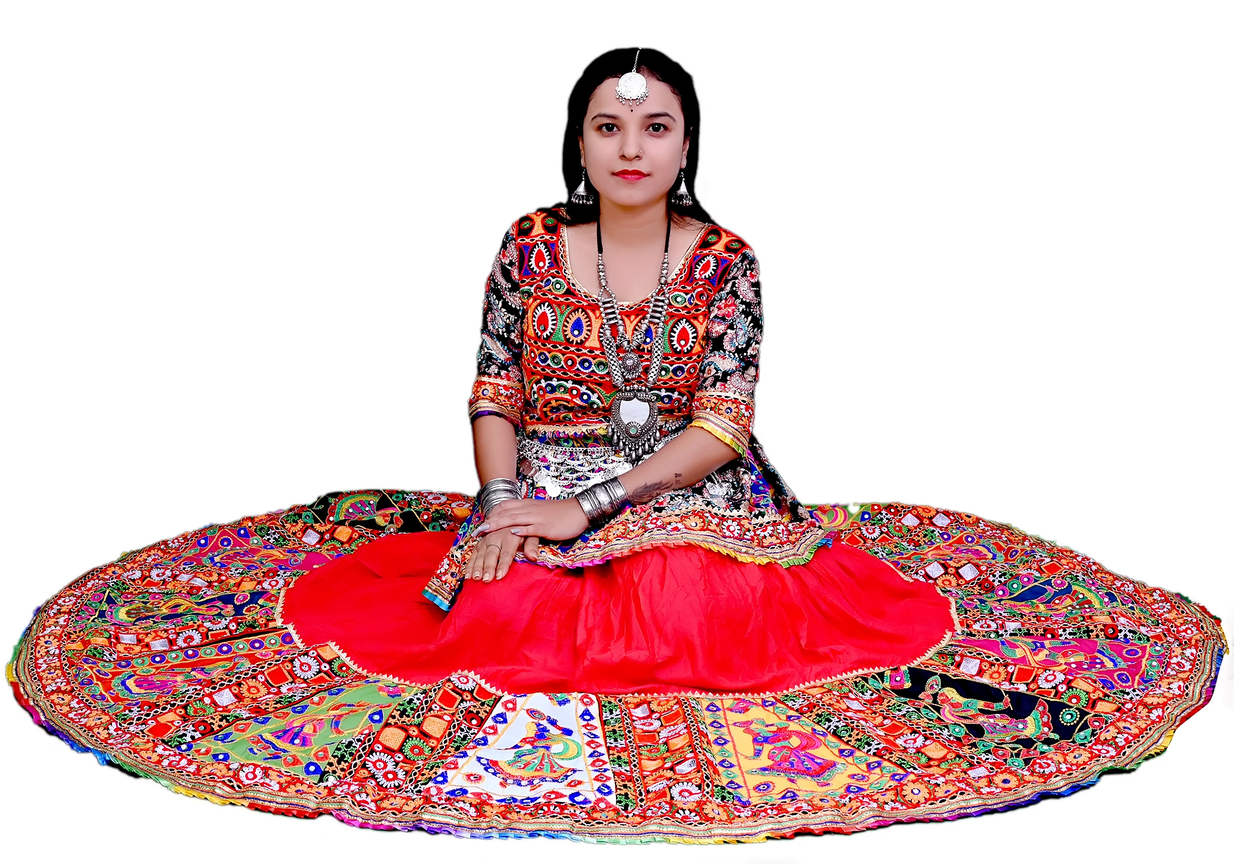 - Product Name: Garba Lehenga Koti Style Dance Costume (Red & Multicolor)