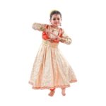 Buy Online Kathak Fancy Dress Costume For Classical Dance. This costume is specially designed for Kathak dance and a crucial part of any performance. This costume is specially designed for Kathak dance and fabulous Gajri and Golden color combination. This dancing dress is comfortable in wearing and net and brocade Material is used. This costume can be worn by girls in school functions, Kathak dance, international state level dance competitions and cultural programs.