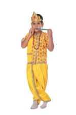 Krishana Fancy Dress Costume for Kids. Krishna Costume dress is the most popular dress for kids in India, Every kid wears this costume at least once in his childhood. The costume includes a Yellow Kurta and dhoti, Baju band, Patka, Flute, Kundal, and a Crown. This costume is specially designed for boys who want to play the role of Krishan Janmashtami in school functions, fancy dress competitions,