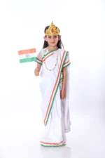 Mother India Saree Fancy Dress Costume for girls. This costume is specially designed for girls who want to play the role of Mother India in school functions, fancy dress competition, Indian state theme competitions or role model presentation. It is a beautiful combination of Saree, blouse.
