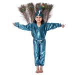 Buy online Peacock Kids Fancy Dress Costume. This Costume especially uses velvet fabric and beautiful color combination. One-piece includes Jumpsuit with its attached headgear of Peacock face now your little one can become a pretty bird with this colorful costume. Your little kids will love playing the part of the bird community with this Peacock costume set. There are elastic bands at the hands and legs to make it for your kid to wear.