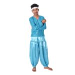 Buy Online Western Dance Dress for Boys in White And Firozi Color. This dress is a combination of Heavy Satin Harem with top Lycra and Zero Bindi Jacket. The costume is designed for boys to wear in school functions, western dance fancy dress competitions, dance competitions, and festivals.