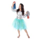 Skirt Top Western Dance Fancy Dress Costume is crafted from high-quality material sourced from trusted vendors in India, specifically designed for dance competitions, national stage shows, and fancy dress events. The costume features a vibrant color contrast of silver and blue, made with shimmer fabric, making it visually appealing and comfortable.